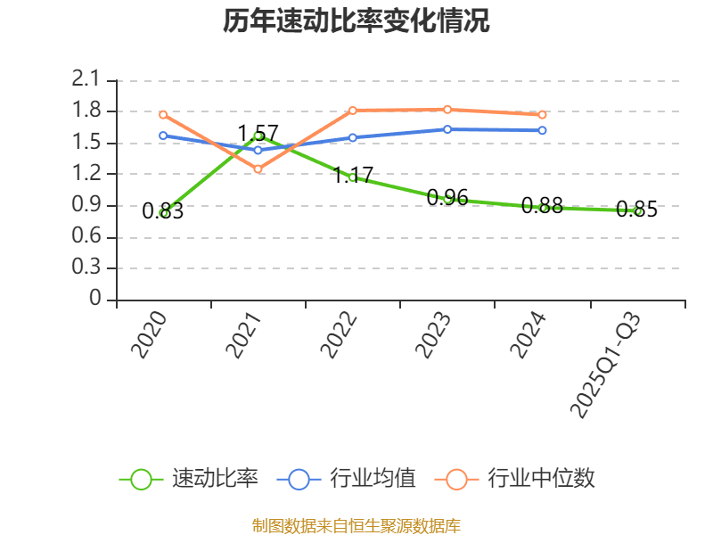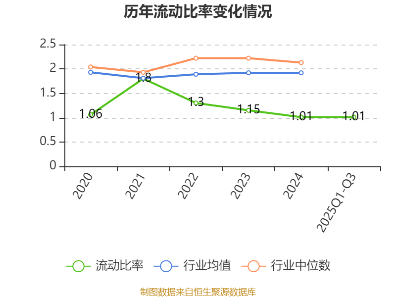 2025年前三季度,公司流动比率为1.01,速动比率为0.85。