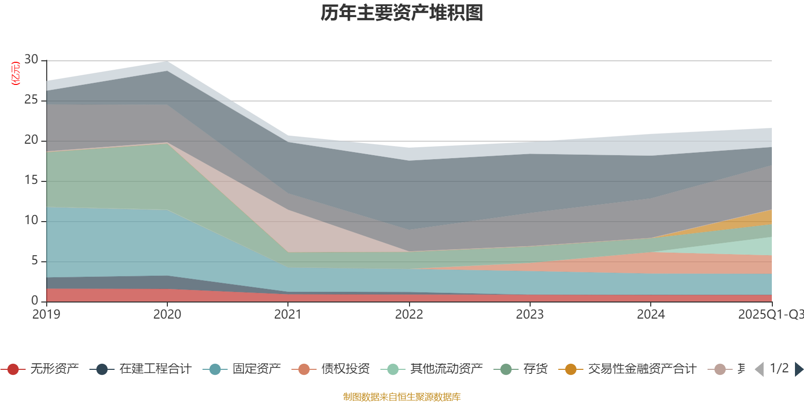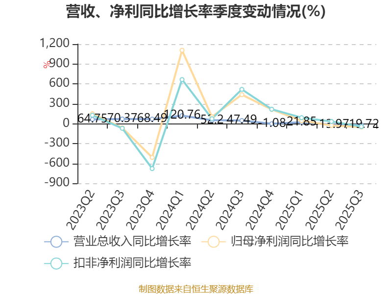 资产重大变化方面,截至2025年三季度末,公司货币资金较上年末减少57.58%,占公司总资产比重下降15个百分点;其他流动资产较上年末增加67849.19%,占公司总资产比重上升10.68个百分点;交易性金融资产合计占公司总资产的8.38%,上年末为0;一年内到期的非流动资产较上年末减少56.83%,占公司总资产比重下降2.84个百分点。