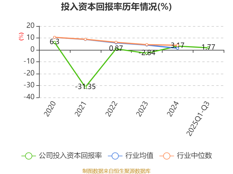 盈利能力方面, 2025年前三季度公司加权平均净资产收益率为1.89%,同比下降0.57个百分点。公司2025年前三季度投入资本回报率为1.77%,较上年同期下降0.42个百分点。