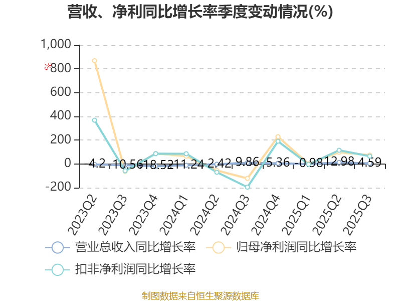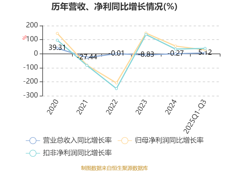 资产重大变化方面,截至2025年三季度末,公司货币资金较上年末增加18.73%,占公司总资产比重上升4.51个百分点;固定资产较上年末减少5.44%,占公司总资产比重下降2.31个百分点;应收票据及应收账款较上年末减少15.33%,占公司总资产比重下降1.78个百分点;其他权益工具投资较上年末减少97.56%,占公司总资产比重下降0.48个百分点。