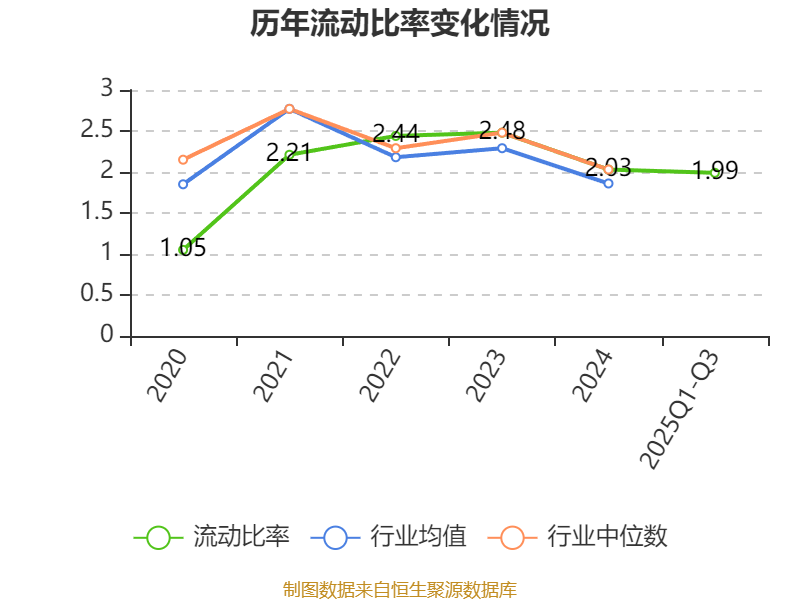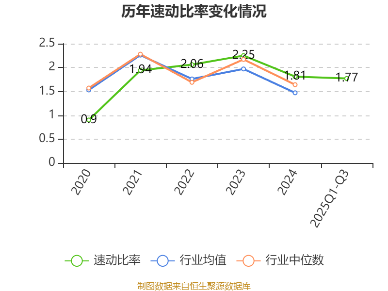 2025年前三季度,公司流动比率为1.99,速动比率为1.77。