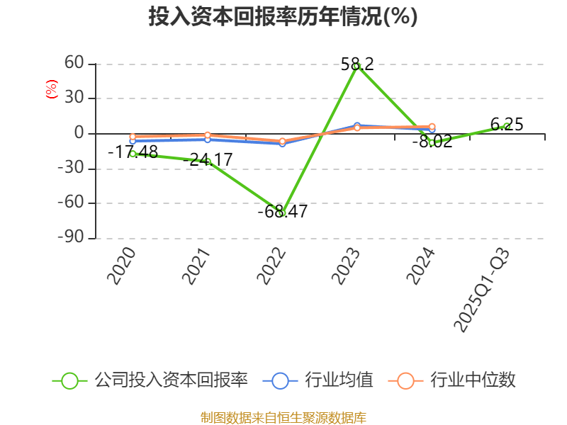 盈利能力方面, 2025年前三季度公司加权平均净资产收益率为-3.65%,同比下降1.87个百分点。公司2025年前三季度投入资本回报率为6.25%,较上年同期上升7.11个百分点。