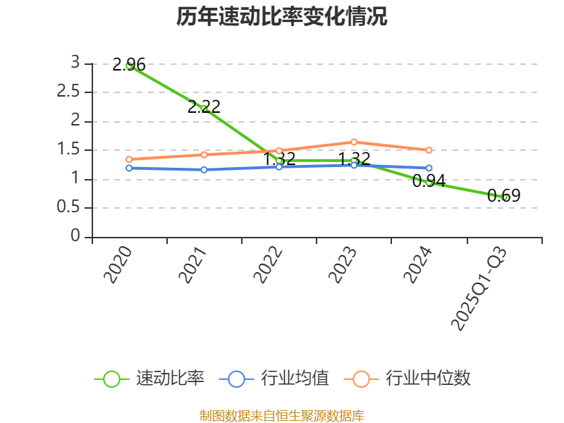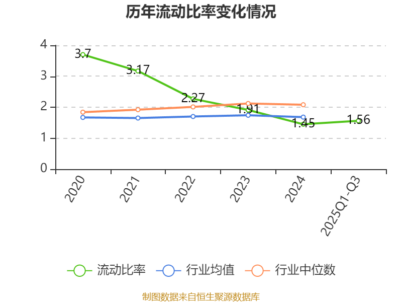 2025年前三季度,公司流动比率为1.56,速动比率为0.69。