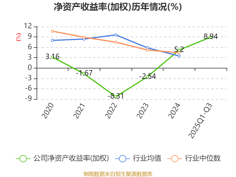 盈利能力方面, 2025年前三季度公司加权平均净资产收益率为8.94%,同比上升5.51个百分点。公司2025年前三季度投入资本回报率为8.23%,较上年同期上升4.86个百分点。