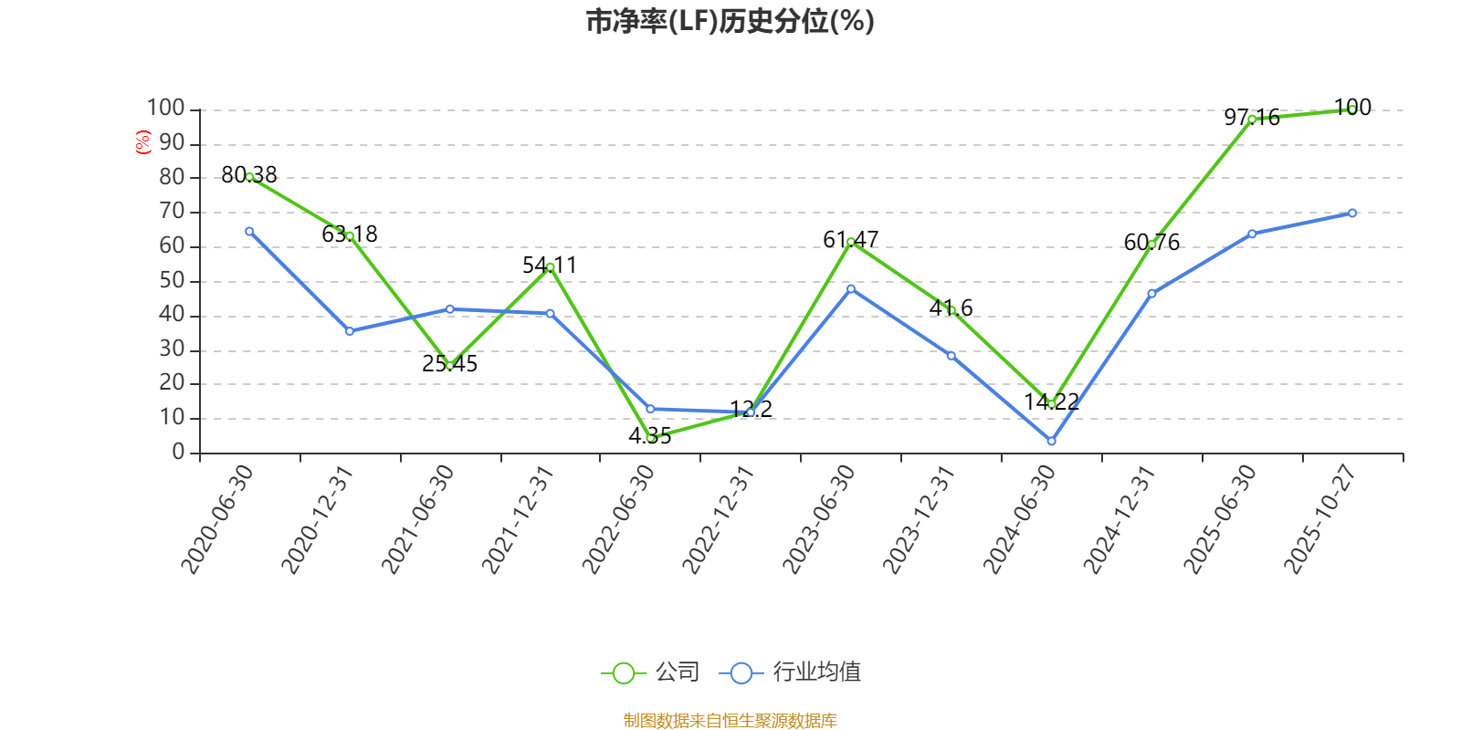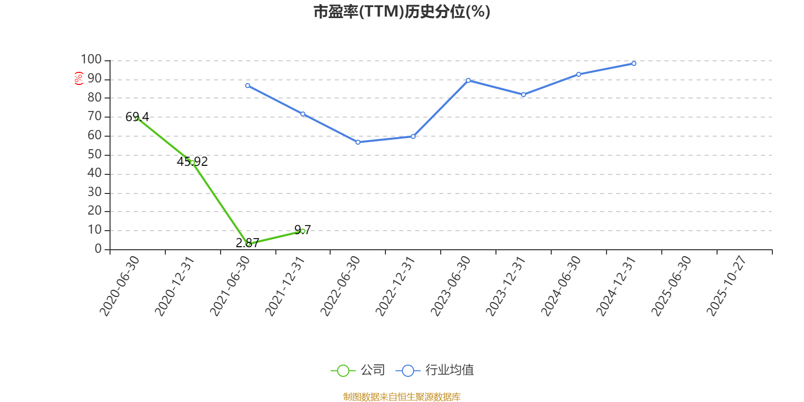 市盈率、市净率为负时,不显示当期分位数,会导致折线图中断。