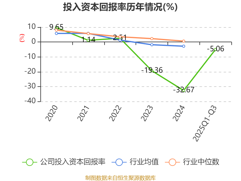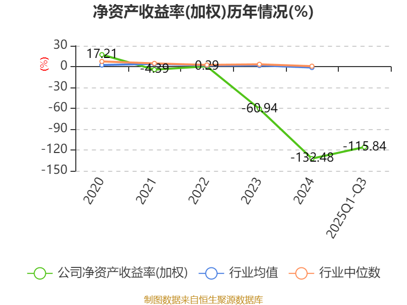 盈利能力方面, 2025年前三季度公司加权平均净资产收益率为-115.84%,同比下降97.2个百分点。公司2025年前三季度投入资本回报率为-5.06%,较上年同期上升0.07个百分点。