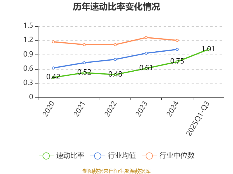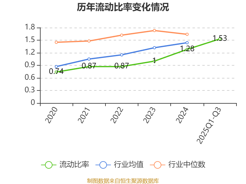 2025年前三季度,公司流动比率为1.53,速动比率为1.01。