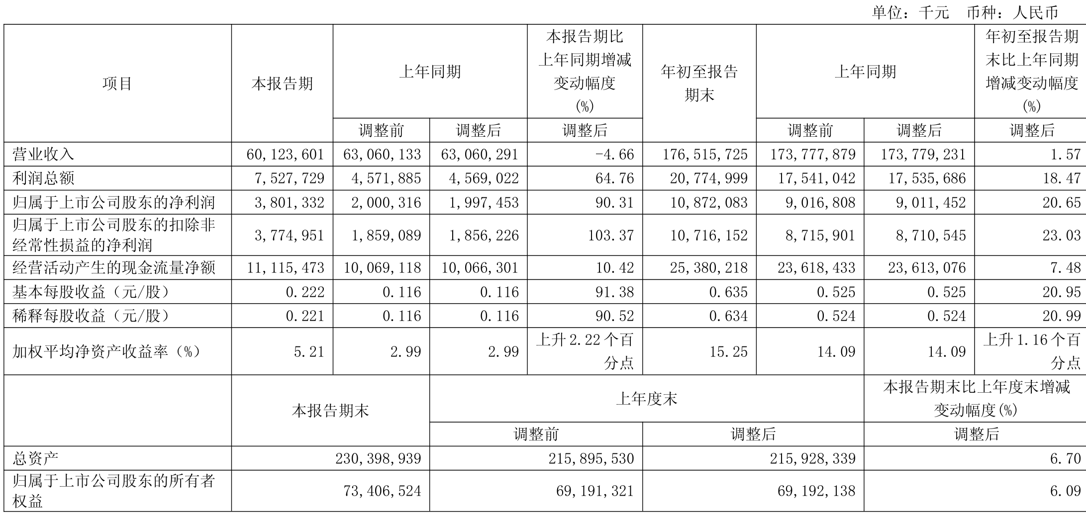 中证智能财讯中国铝业(601600)10月28日披露2025年第三季度报告。前三季度公司实现营业总收入1765.16亿元,同比增长1.57%;归母净利润108.72亿元,同比增长20.65%;扣非净利润107.16亿元,同比增长23.03%;经营活动产生的现金流量净额为253.8亿元,同比增长7.48%;报告期内,中国铝业基本每股收益为0.635元,加权平均净资产收益率为15.25%。