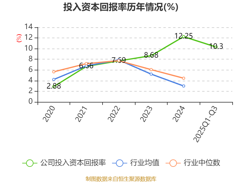 盈利能力方面, 2025年前三季度公司加权平均净资产收益率为15.25%,同比上升1.16个百分点。公司2025年前三季度投入资本回报率为10.3%,较上年同期上升0.79个百分点。