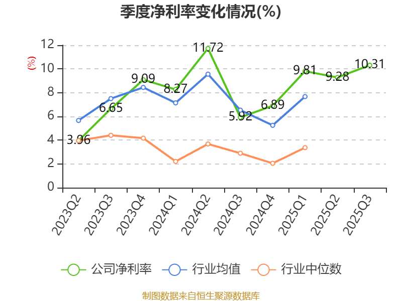 资产重大变化方面,截至2025年三季度末,公司货币资金较上年末增加36.56%,占公司总资产比重上升2.88个百分点;在建工程合计较上年末减少32.17%,占公司总资产比重下降1.78个百分点;固定资产较上年末增加2.97%,占公司总资产比重下降1.55个百分点;交易性金融资产合计较上年末增加100.22%,占公司总资产比重上升0.81个百分点。