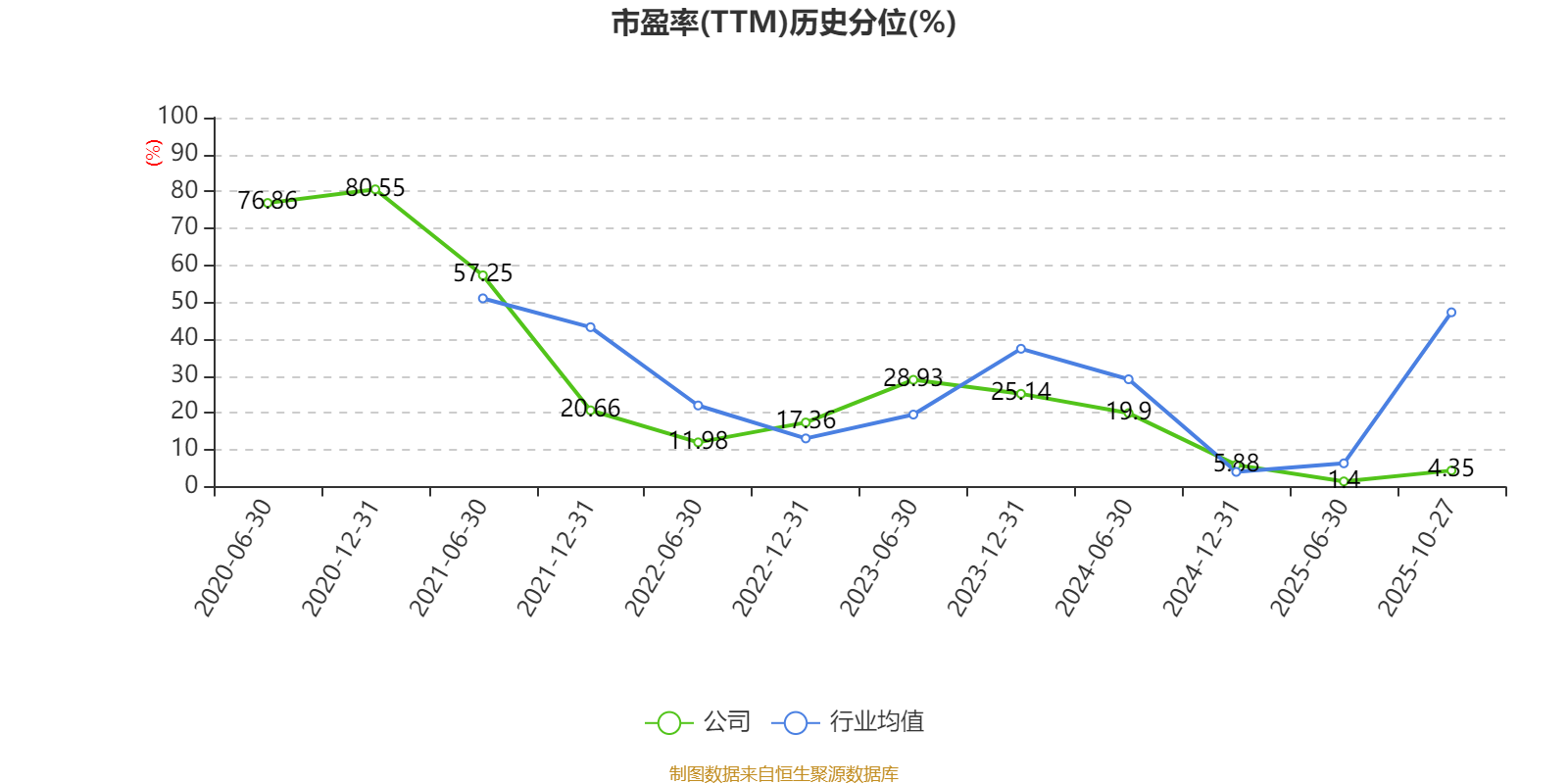 市盈率、市净率为负时,不显示当期分位数,会导致折线图中断。