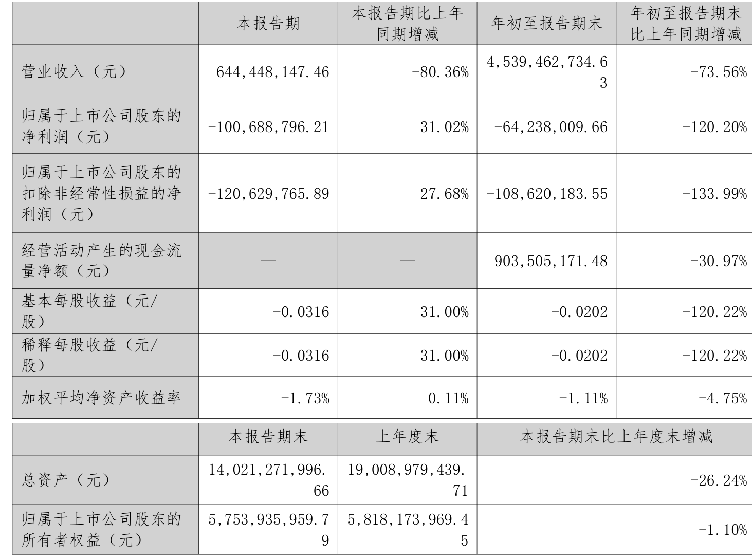 中证智能财讯荣安地产(000517)10月28日披露2025年第三季度报告。前三季度公司实现营业总收入45.39亿元,同比下降73.56%;归母净利润亏损6423.8万元,上年同期盈利3.18亿元;扣非净利润亏损1.09亿元,上年同期盈利3.2亿元;经营活动产生的现金流量净额为9.04亿元,同比下降30.97%;报告期内,荣安地产基本每股收益为-0.0202元,加权平均净资产收益率为-1.11%。
