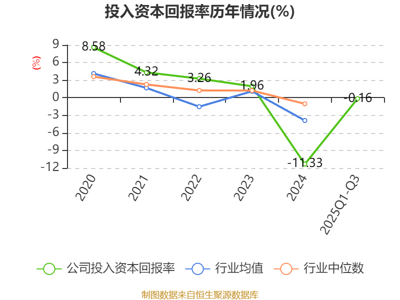 盈利能力方面, 2025年前三季度公司加权平均净资产收益率为-1.11%,同比下降4.75个百分点。公司2025年前三季度投入资本回报率为-0.16%,较上年同期下降2.29个百分点。