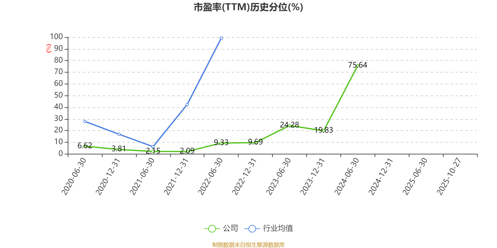 市盈率、市净率为负时,不显示当期分位数,会导致折线图中断。