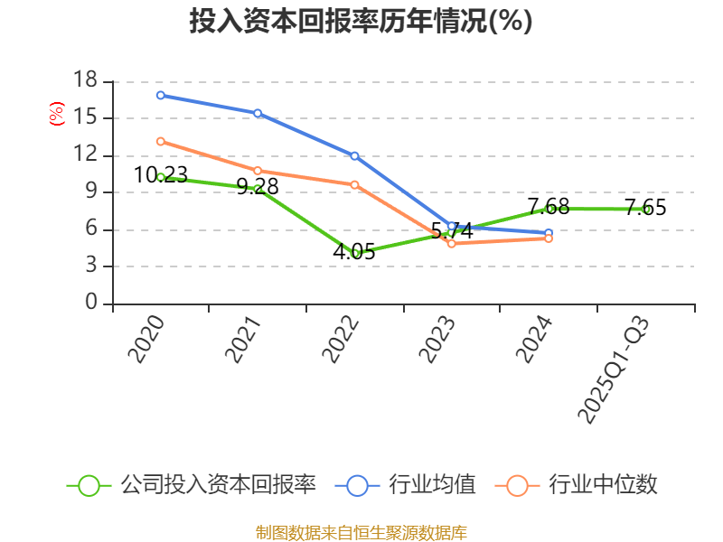 盈利能力方面, 2025年前三季度公司加权平均净资产收益率为8.07%,同比上升2.54个百分点。公司2025年前三季度投入资本回报率为7.65%,较上年同期上升2.4个百分点。