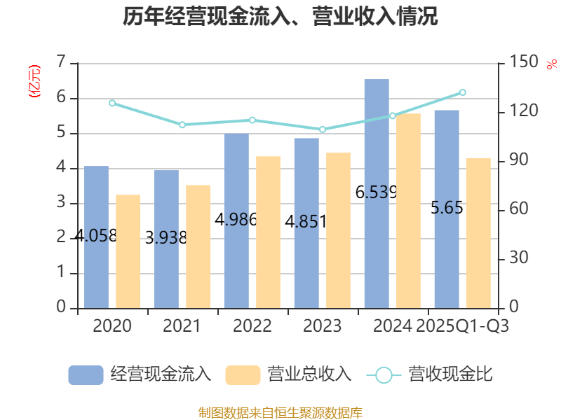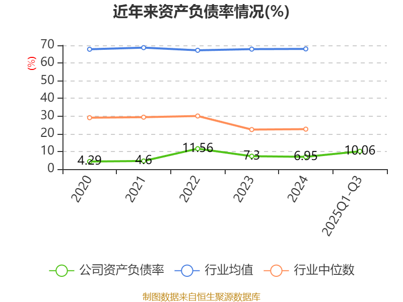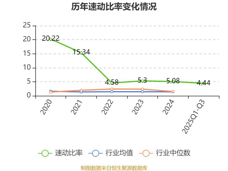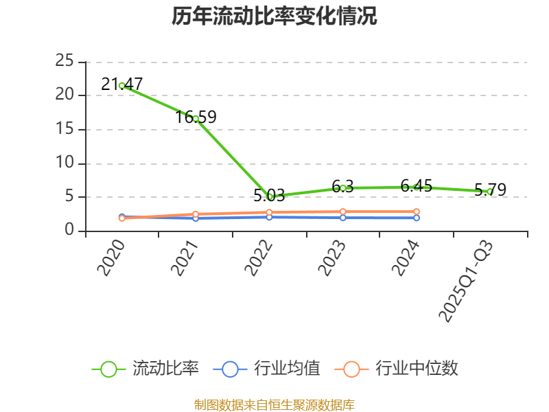 2025年前三季度,公司流动比率为5.79,速动比率为4.44。