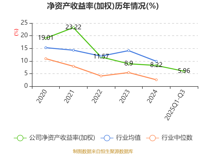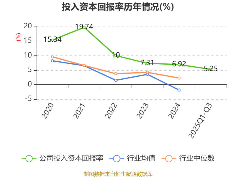盈利能力方面, 2025年前三季度公司加权平均净资产收益率为5.96%,同比下降0.04个百分点。公司2025年前三季度投入资本回报率为5.25%,较上年同期下降0.04个百分点。