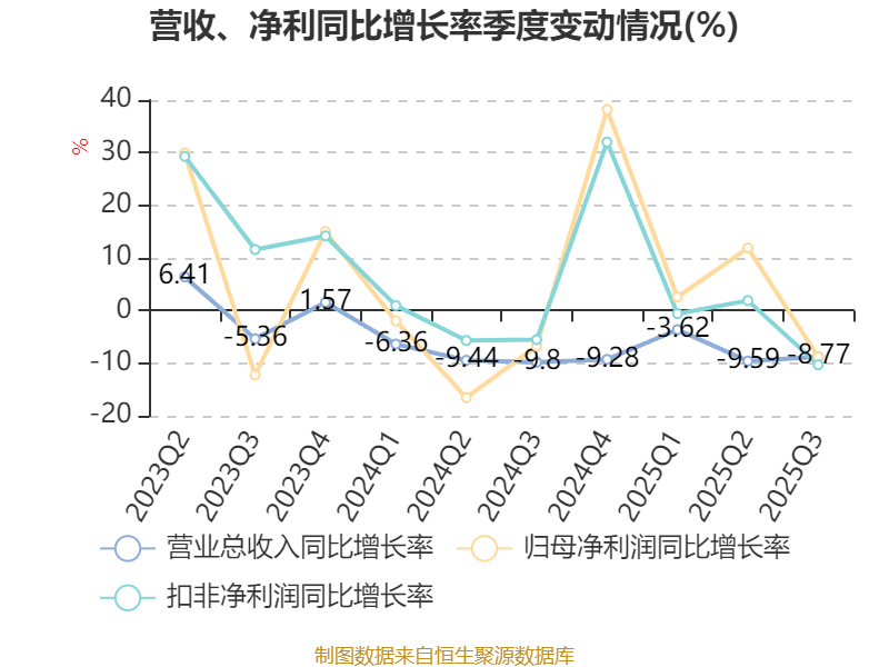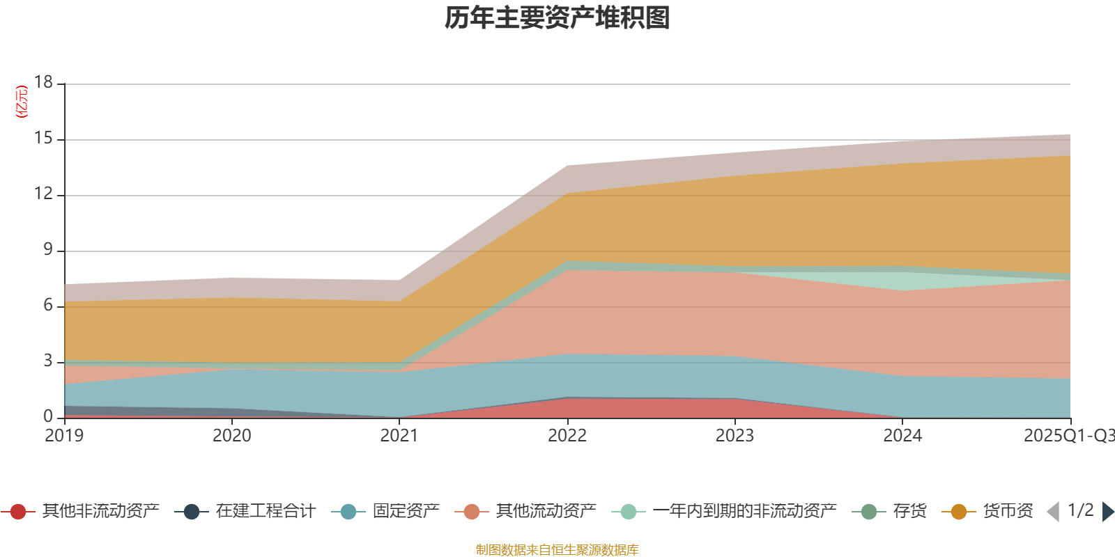 资产重大变化方面,截至2025年三季度末,公司一年内到期的非流动资产较上年末减少100%,占公司总资产比重下降6.72个百分点;货币资金较上年末增加15.13%,占公司总资产比重上升4.55个百分点;其他流动资产较上年末增加15.18%,占公司总资产比重上升3.81个百分点;固定资产较上年末减少5.38%,占公司总资产比重下降1.16个百分点。