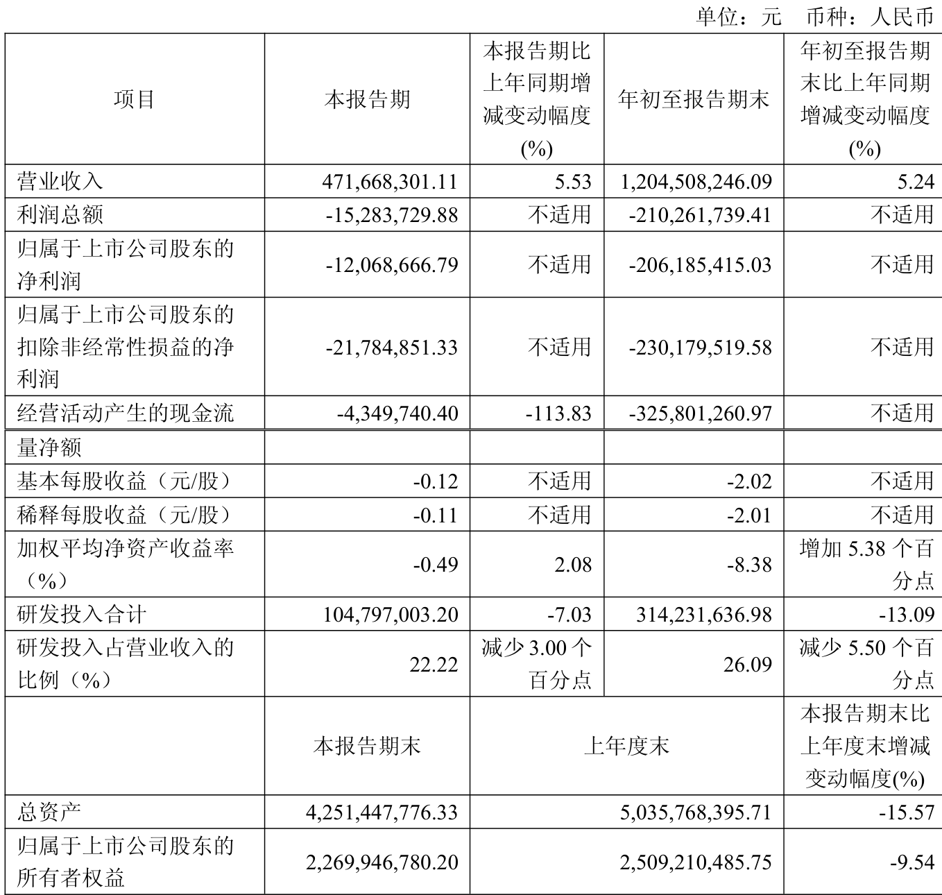 中证智能财讯安恒信息(688023)10月28日披露2025年第三季度报告。前三季度公司实现营业总收入12.05亿元,同比增长5.24%;归母净利润亏损2.06亿元,上年同期亏损3.36亿元;扣非净利润亏损2.3亿元,上年同期亏损3.55亿元;经营活动产生的现金流量净额为-3.26亿元,上年同期为-3.97亿元;报告期内,安恒信息基本每股收益为-2.02元,加权平均净资产收益率为-8.38%。