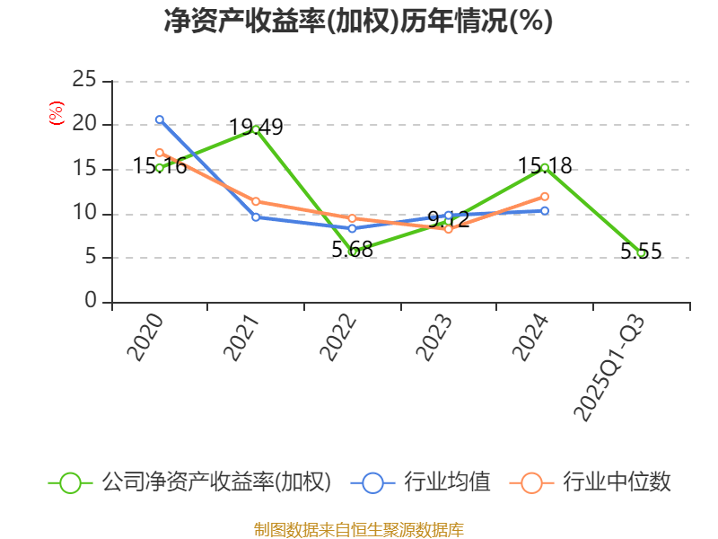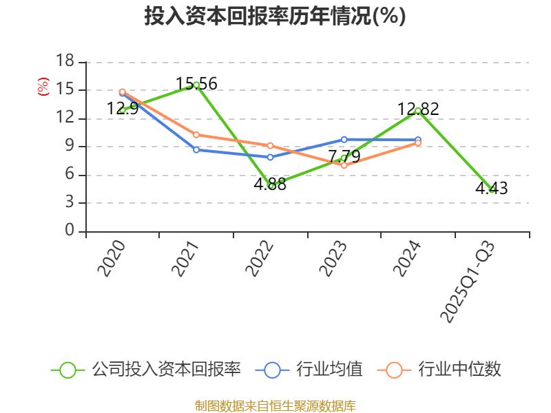 盈利能力方面, 2025年前三季度公司加权平均净资产收益率为5.55%,同比下降7.35个百分点。公司2025年前三季度投入资本回报率为4.43%,较上年同期下降6.61个百分点。