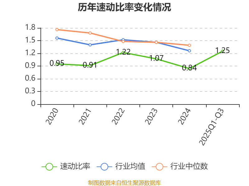 2025年前三季度,公司流动比率为1.7,速动比率为1.25。