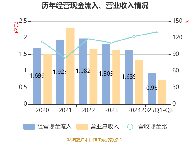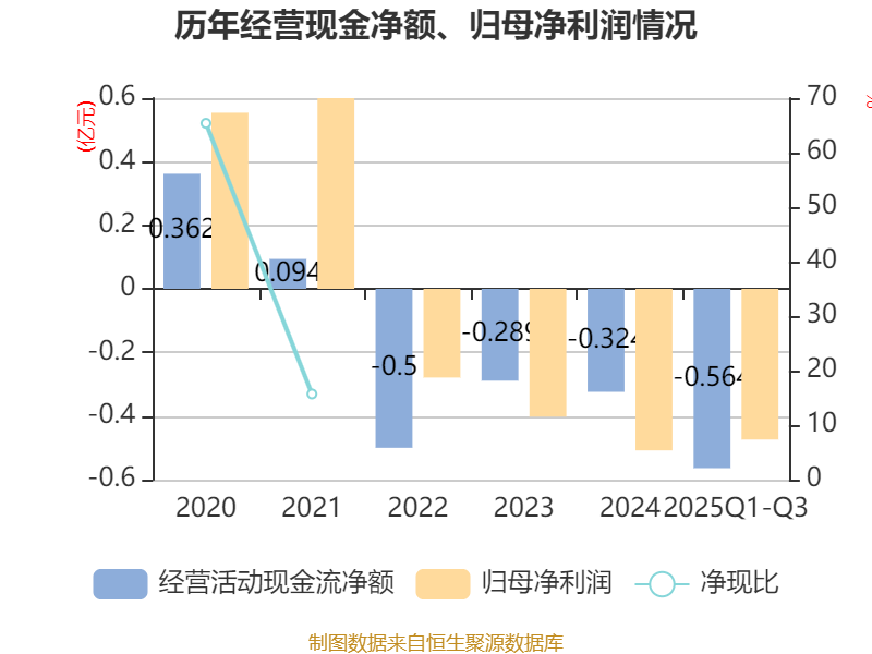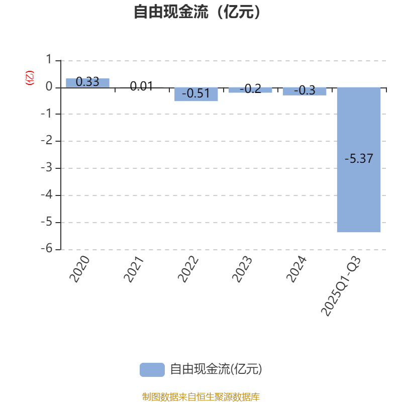 2025年前三季度,公司经营活动现金流净额为-5642.5万元,同比减少1350.26万元;筹资活动现金流净额-653.38万元,同比增加48.58万元;投资活动现金流净额-4.67亿元,上年同期为-3.91亿元。