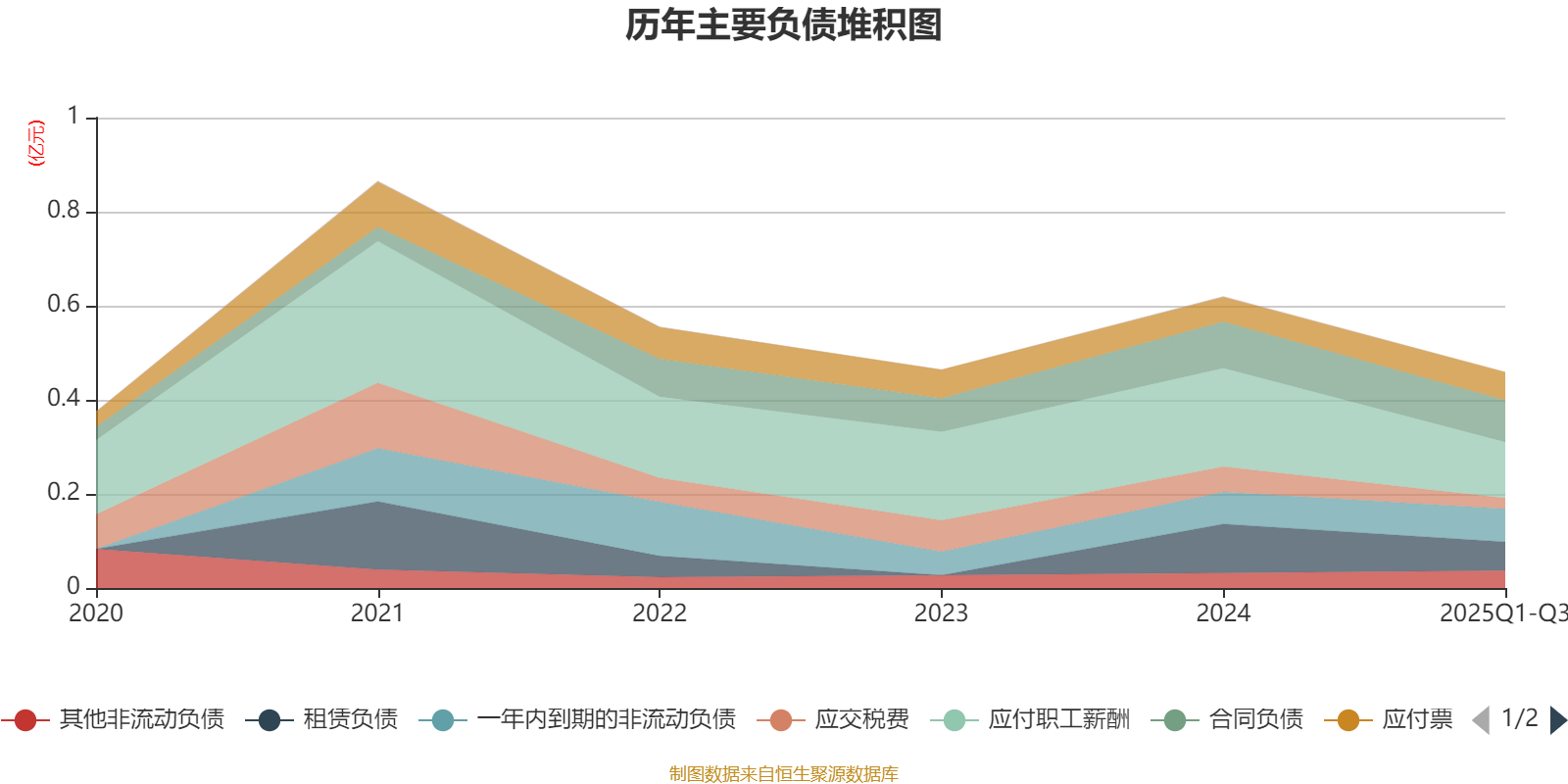 负债重大变化方面,截至2025年三季度末,公司应付职工薪酬较上年末减少43.12%,占公司总资产比重下降0.9个百分点;租赁负债较上年末减少41.53%,占公司总资产比重下降0.43个百分点;应交税费较上年末减少56.83%,占公司总资产比重下降0.32个百分点;应付票据及应付账款较上年末增加14.18%,占公司总资产比重上升0.13个百分点。