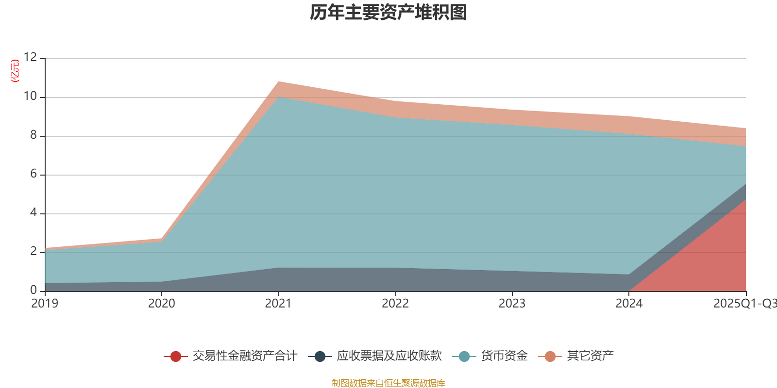 资产重大变化方面,截至2025年三季度末,公司货币资金较上年末减少73.15%,占公司总资产比重下降57.2个百分点;交易性金融资产合计占公司总资产的56.21%,上年末为0;递延所得税资产较上年末增加32.4%,占公司总资产比重上升1.39个百分点;使用权资产较上年末减少22.59%,占公司总资产比重下降0.33个百分点。