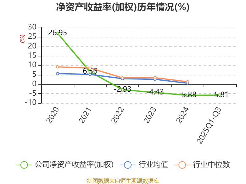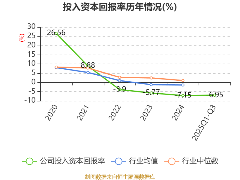 盈利能力方面, 2025年前三季度公司加权平均净资产收益率为-5.81%,同比下降1.48个百分点。公司2025年前三季度投入资本回报率为-6.95%,较上年同期下降1.52个百分点。