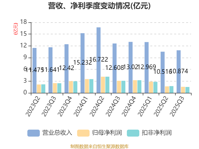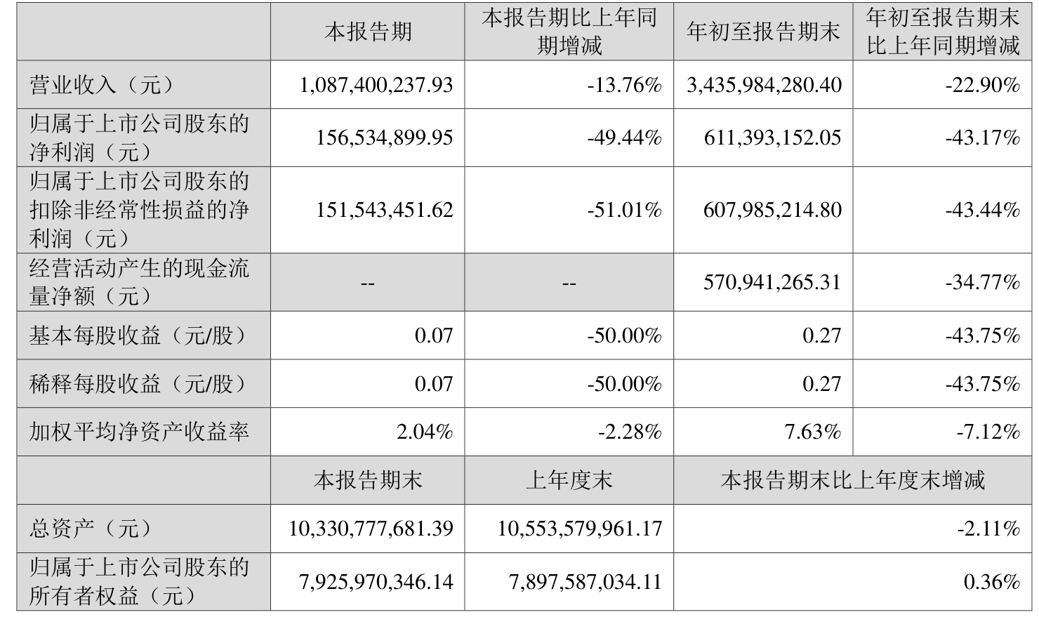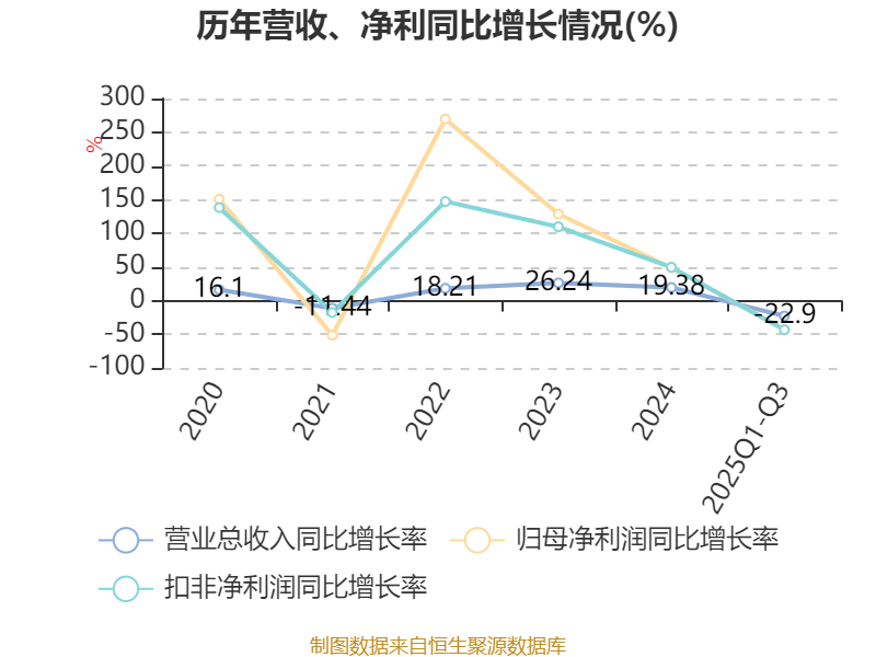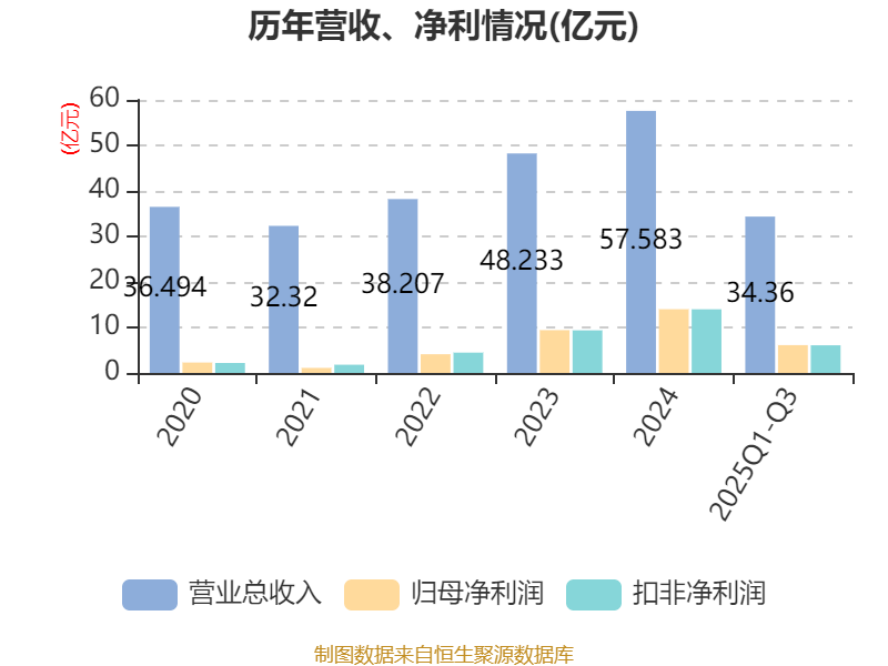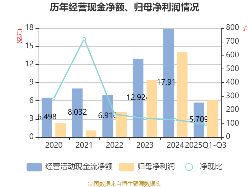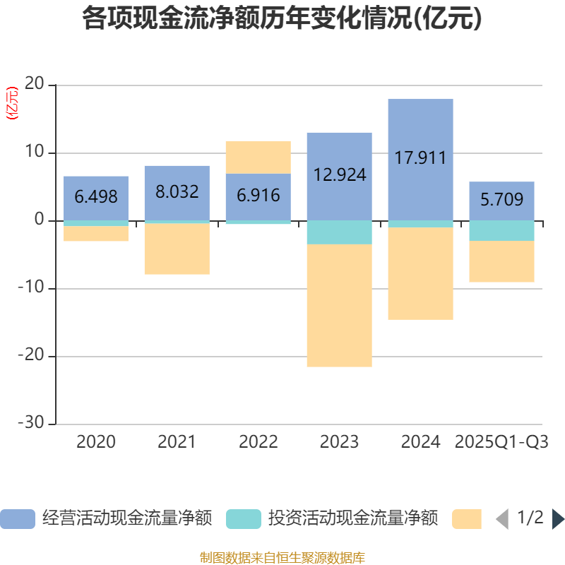 2025年前三季度,公司经营活动现金流净额为5.71亿元,同比下降34.77%;筹资活动现金流净额-6.09亿元,同比增加2.95亿元;投资活动现金流净额-3.02亿元,上年同期为-1.11亿元。