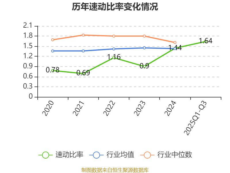 2025年前三季度,公司流动比率为2.23,速动比率为1.64。