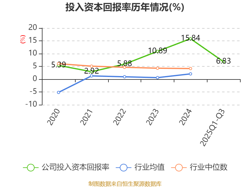 盈利能力方面, 2025年前三季度公司加权平均净资产收益率为7.63%,同比下降7.12个百分点。公司2025年前三季度投入资本回报率为6.83%,较上年同期下降5.15个百分点。