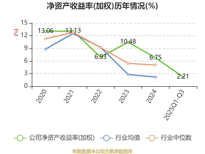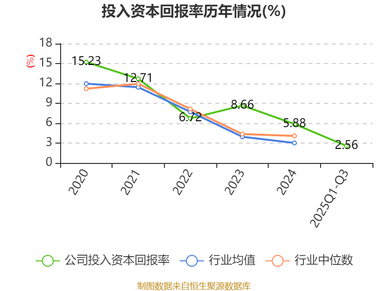 盈利能力方面, 2025年前三季度公司加权平均净资产收益率为2.21%,同比下降3.41个百分点。公司2025年前三季度投入资本回报率为2.56%,较上年同期下降2.23个百分点。