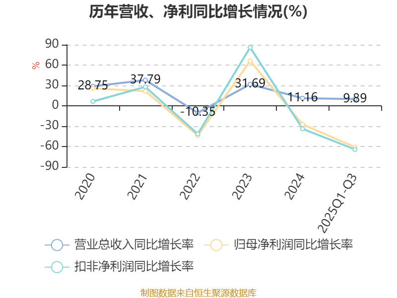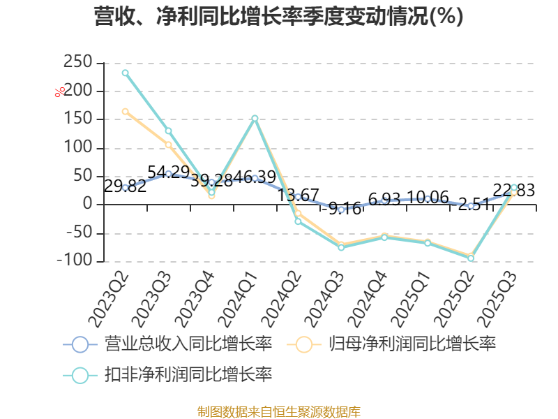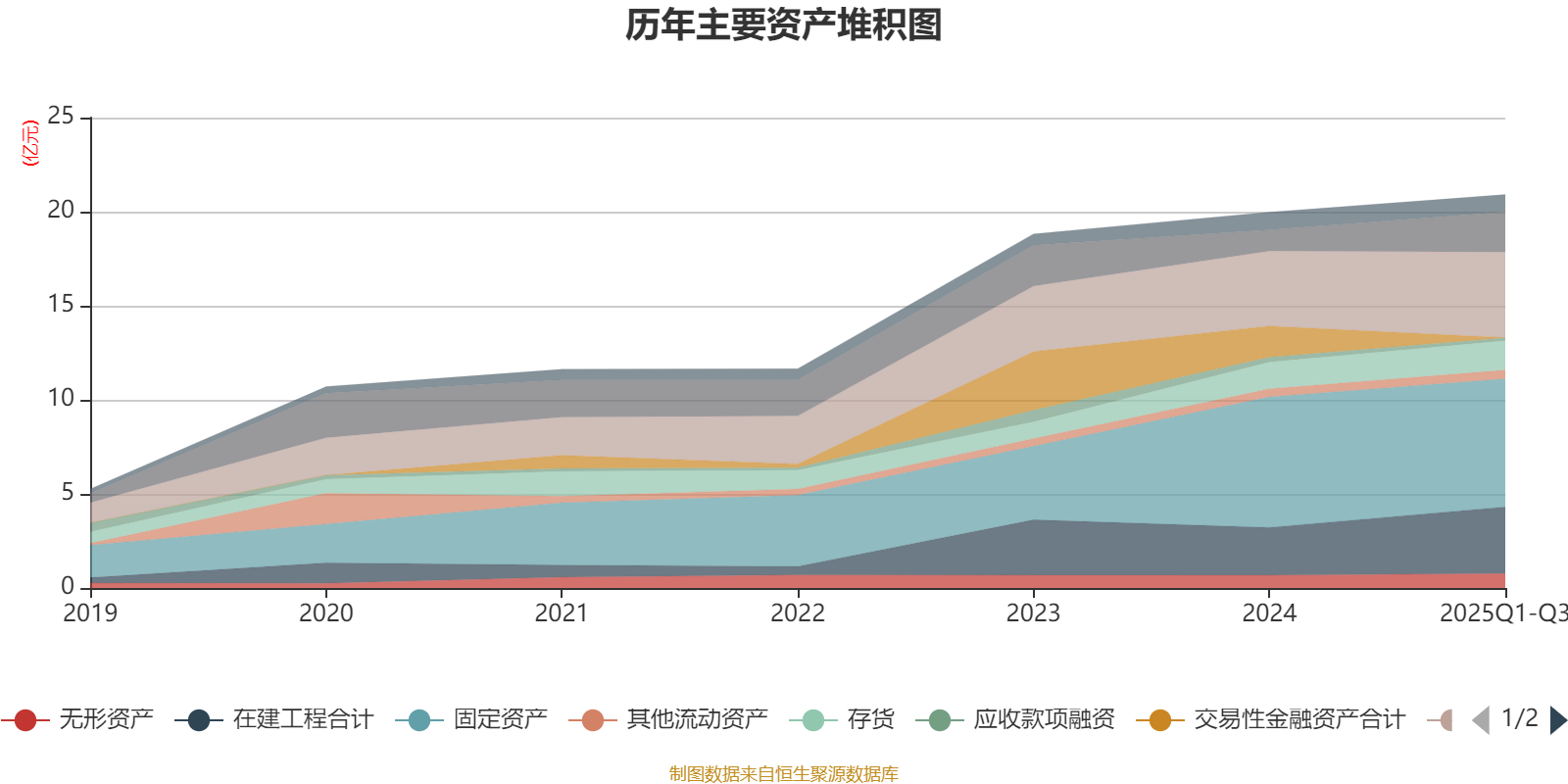 资产重大变化方面,截至2025年三季度末,公司交易性金融资产合计较上年末减少99.16%,占公司总资产比重下降8.22个百分点;货币资金较上年末增加88.19%,占公司总资产比重上升4.53个百分点;在建工程合计较上年末增加39.67%,占公司总资产比重上升4.25个百分点;固定资产较上年末减少1.88%,占公司总资产比重下降2.17个百分点。
