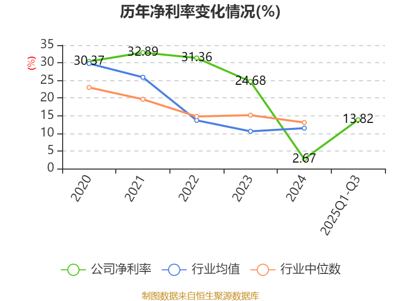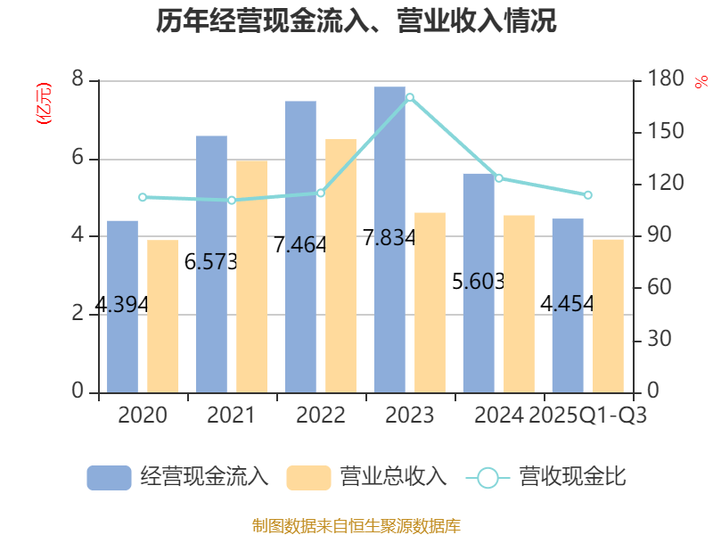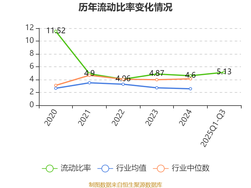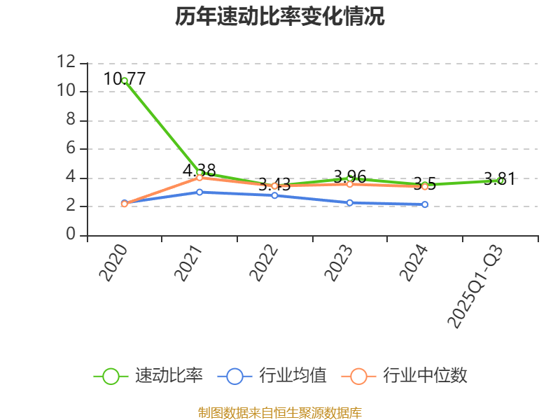 2025年前三季度,公司流动比率为5.13,速动比率为3.81。