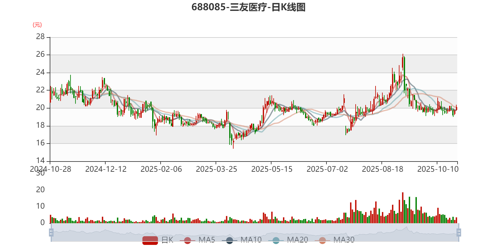 中证智能财讯三友医疗(688085)10月28日披露2025年第三季度报告。前三季度公司实现营业总收入3.91亿元,同比增长17.65%;归母净利润6198.13万元,同比增长623.19%;扣非净利润4935.58万元,同比增长1737.69%;经营活动产生的现金流量净额为2557.9万元,同比增长361.91%;报告期内,三友医疗基本每股收益为0.19元,加权平均净资产收益率为3.08%。