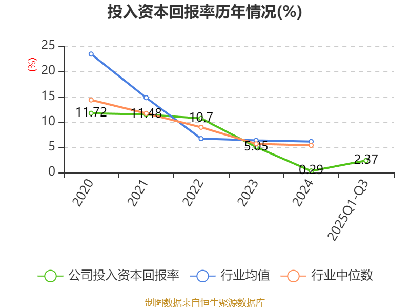 盈利能力方面, 2025年前三季度公司加权平均净资产收益率为3.08%,同比上升2.63个百分点。公司2025年前三季度投入资本回报率为2.37%,较上年同期上升2.15个百分点。