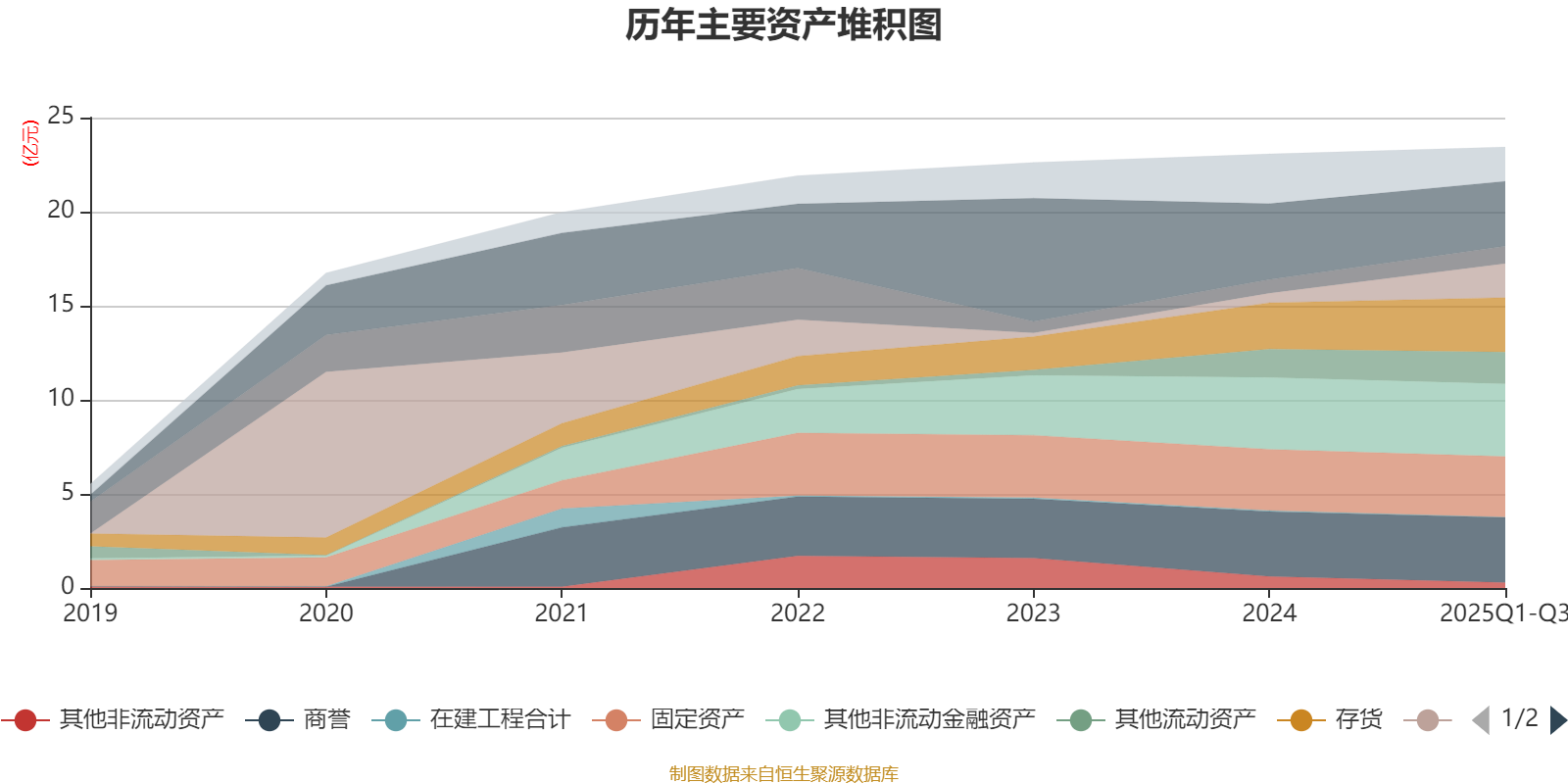 资产重大变化方面,截至2025年三季度末,公司交易性金融资产合计较上年末增加258.81%,占公司总资产比重上升5.51个百分点;一年内到期的非流动资产较上年末减少66.82%,占公司总资产比重下降2.83个百分点;货币资金较上年末减少14.65%,占公司总资产比重下降2.8个百分点;存货较上年末增加17.76%,占公司总资产比重上升1.69个百分点。