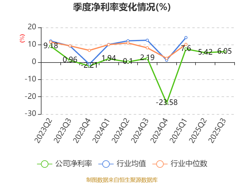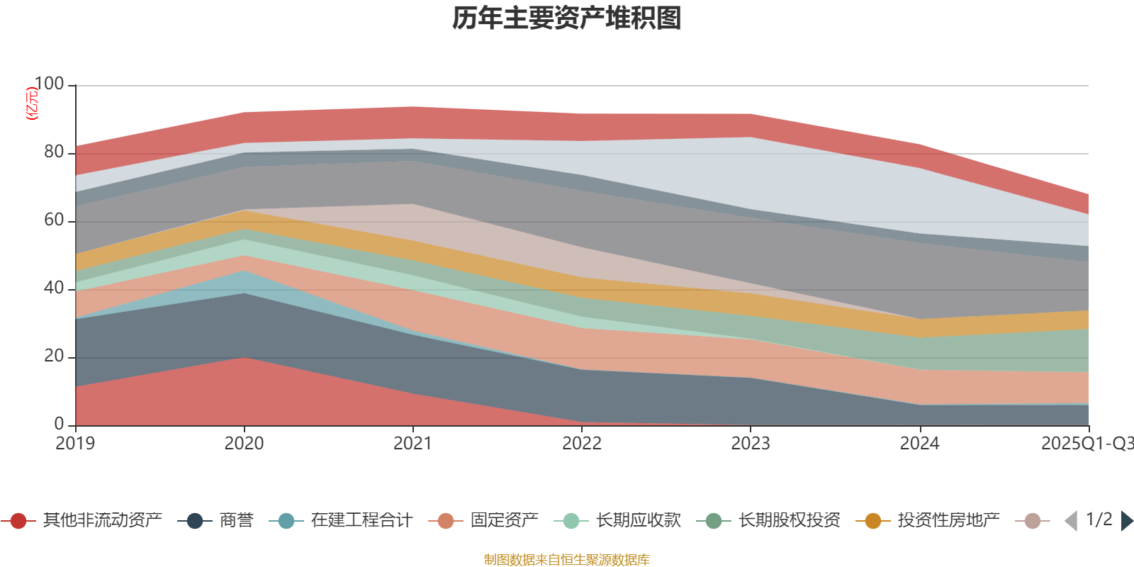 资产重大变化方面,截至2025年三季度末,公司货币资金较上年末减少51.55%,占公司总资产比重下降9.56个百分点;长期股权投资较上年末增加35.09%,占公司总资产比重上升7.31个百分点;存货较上年末减少36.59%,占公司总资产比重下降6.19个百分点;应收票据及应收账款较上年末增加68.35%,占公司总资产比重上升3.55个百分点。