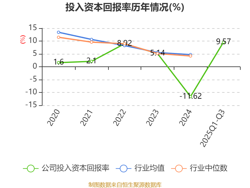 盈利能力方面, 2025年前三季度公司加权平均净资产收益率为13.29%,同比上升10.39个百分点。公司2025年前三季度投入资本回报率为9.57%,较上年同期上升7.09个百分点。