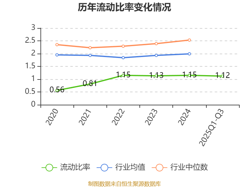 2025年前三季度,公司流动比率为1.12,速动比率为0.63。