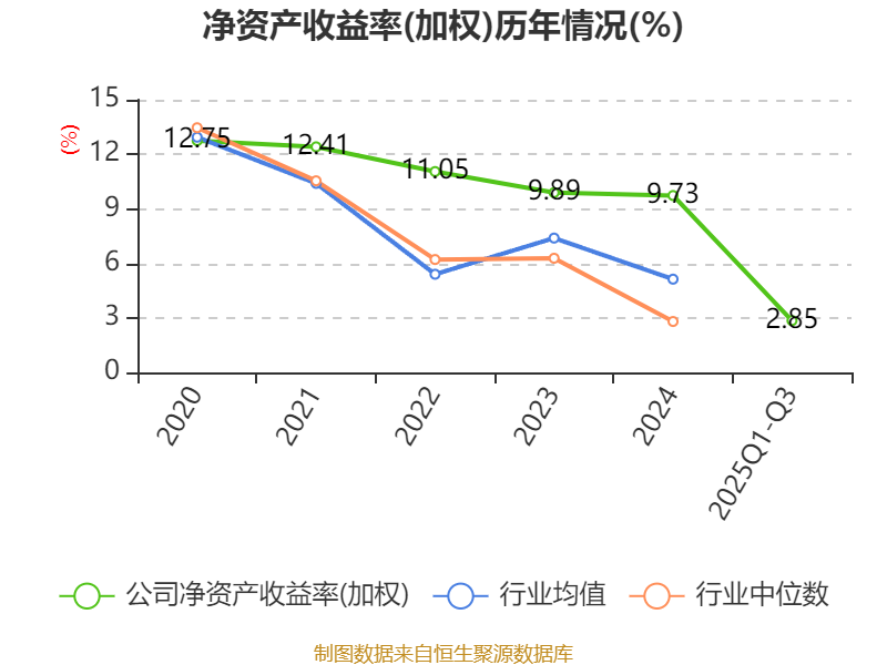 盈利能力方面, 2025年前三季度公司加权平均净资产收益率为2.85%,同比上升0.9个百分点。公司2025年前三季度投入资本回报率为2.51%,较上年同期下降1.02个百分点。
