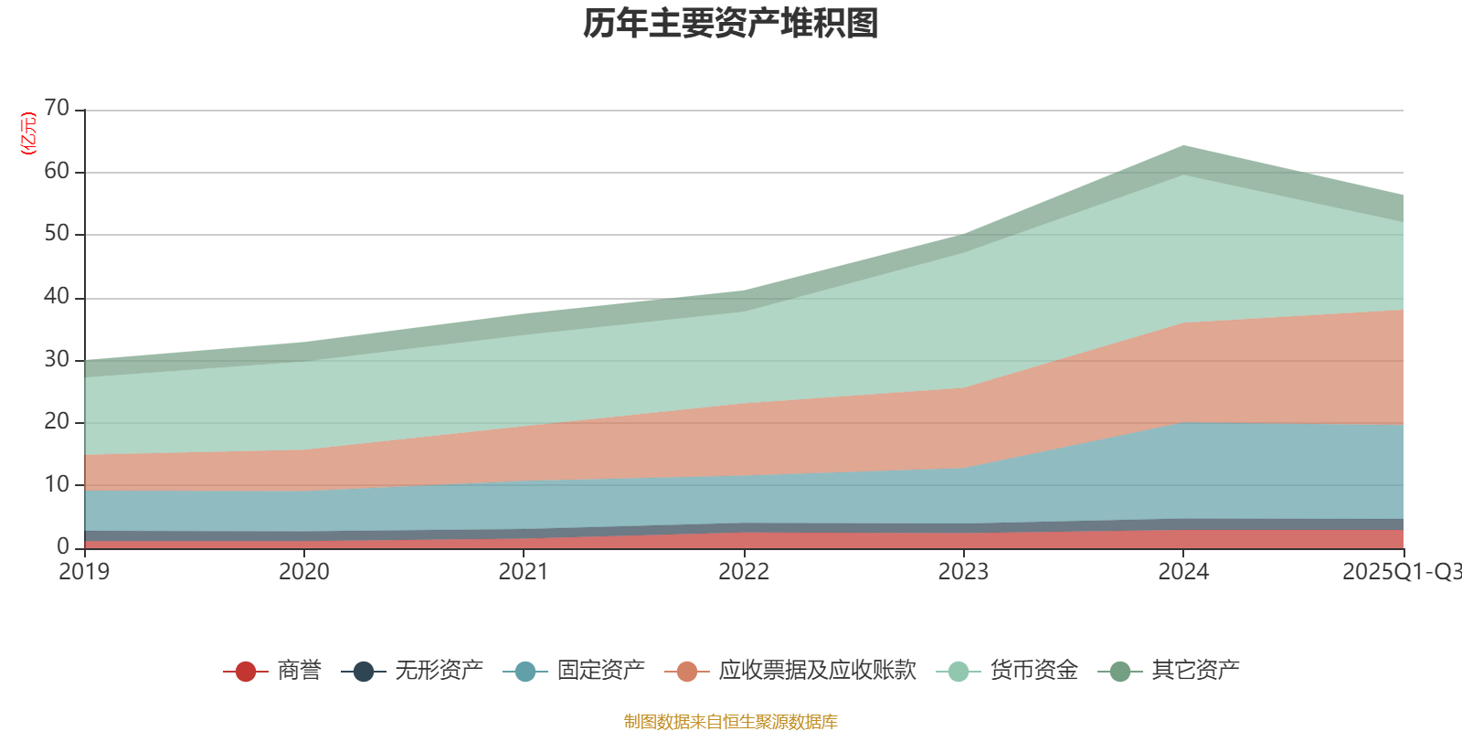 资产重大变化方面,截至2025年三季度末,公司货币资金较上年末减少40.93%,占公司总资产比重下降11.97个百分点;应收票据及应收账款较上年末增加16.03%,占公司总资产比重上升7.99个百分点;固定资产较上年末减少2.3%,占公司总资产比重上升2.74个百分点;其他非流动资产较上年末减少64.31%,占公司总资产比重下降0.69个百分点。