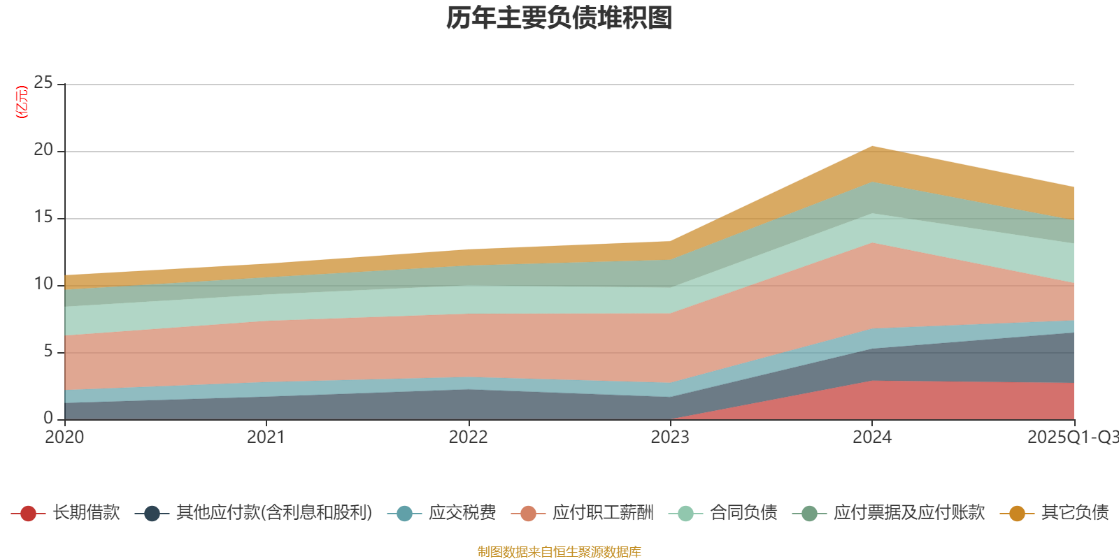 负债重大变化方面,截至2025年三季度末,公司应付职工薪酬较上年末减少56.46%,占公司总资产比重下降5.01个百分点;其他应付款(含利息和股利)较上年末增加58.39%,占公司总资产比重上升2.98个百分点;合同负债较上年末增加34.67%,占公司总资产比重上升1.83个百分点;应交税费较上年末减少39.48%,占公司总资产比重下降0.73个百分点。