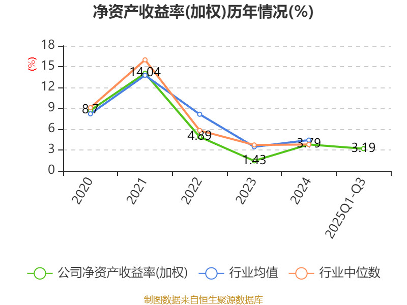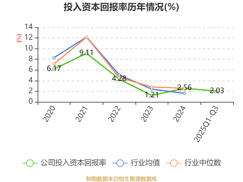 盈利能力方面, 2025年前三季度公司加权平均净资产收益率为3.19%,同比上升0.98个百分点。公司2025年前三季度投入资本回报率为2.03%,较上年同期上升0.5个百分点。