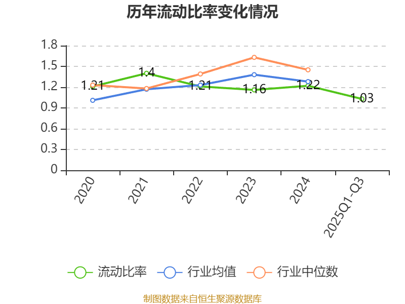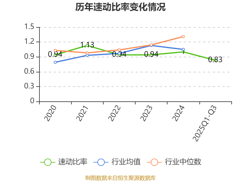 2025年前三季度,公司流动比率为1.03,速动比率为0.83。
