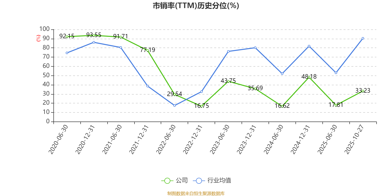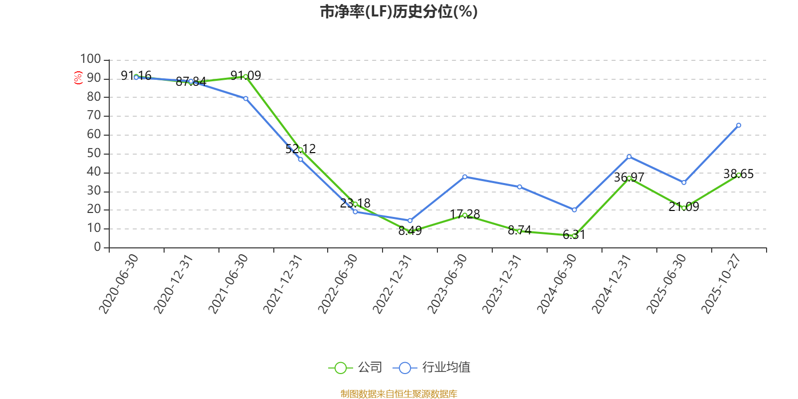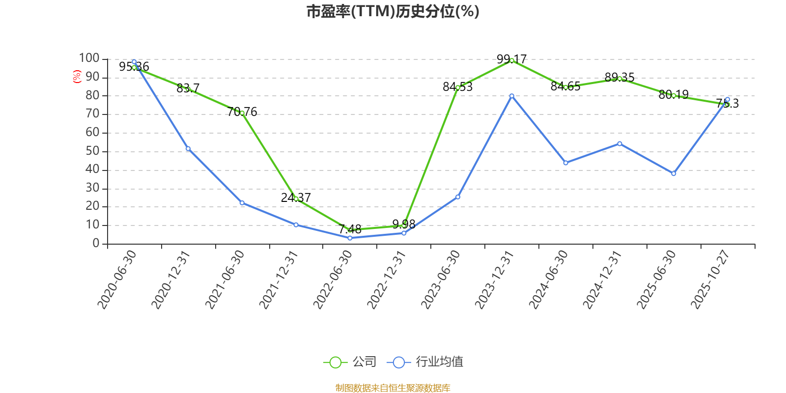 市盈率、市净率为负时,不显示当期分位数,会导致折线图中断。