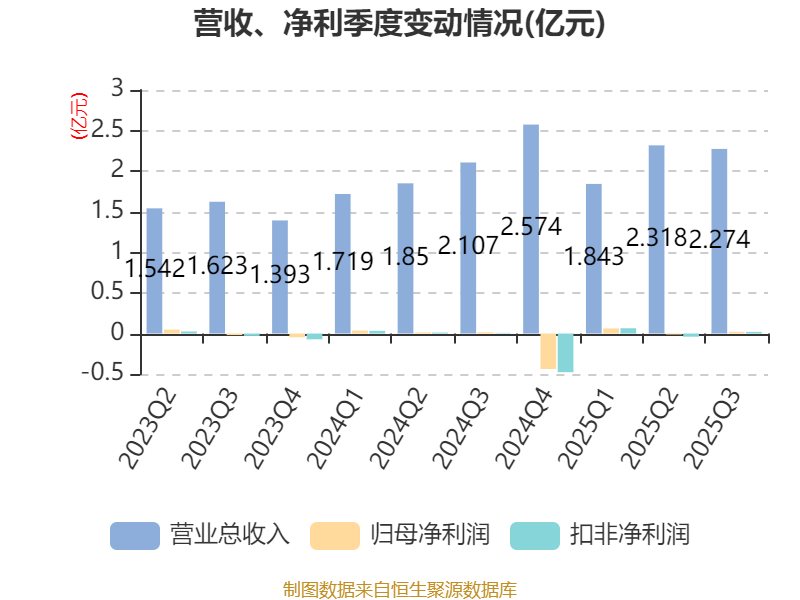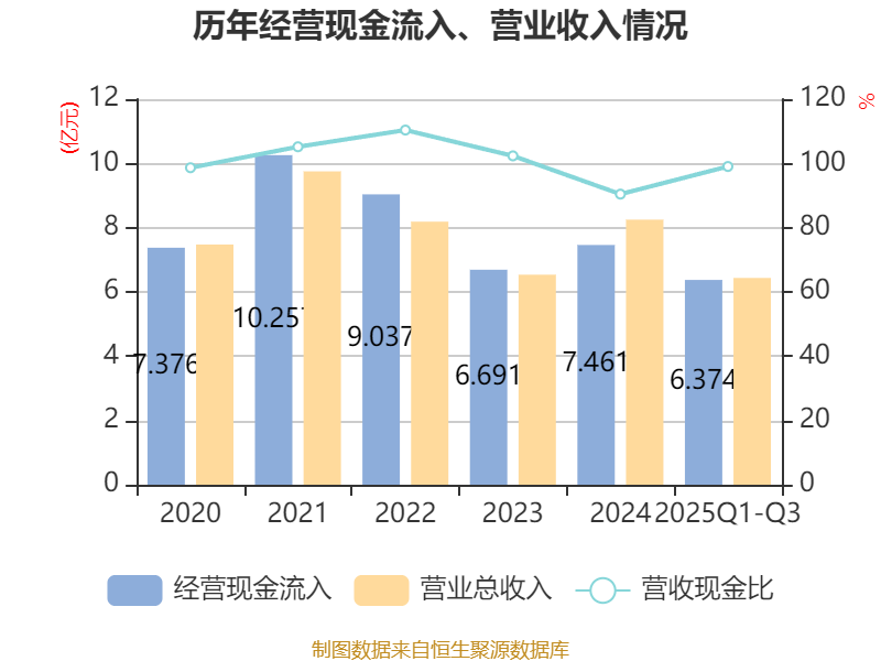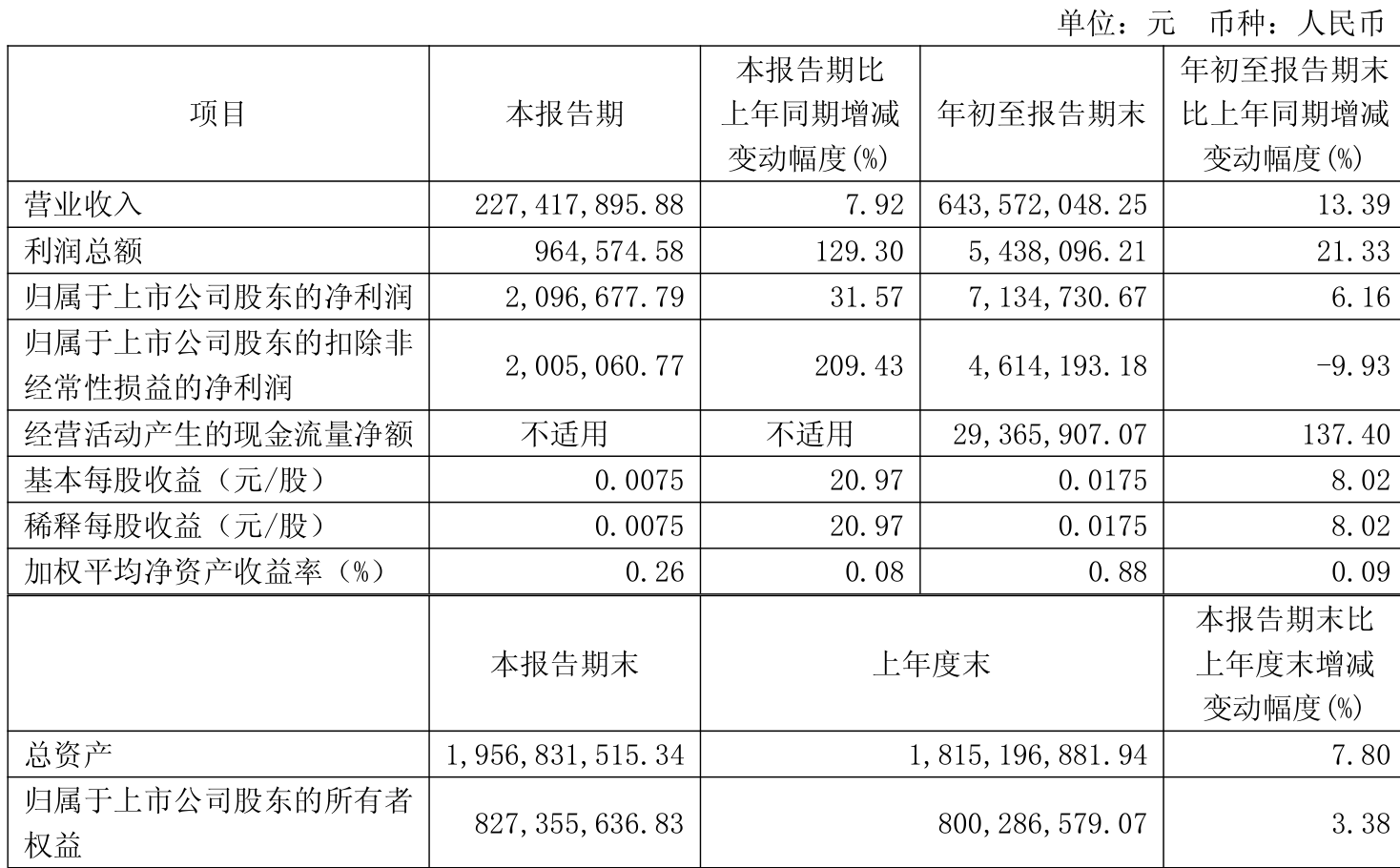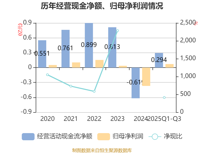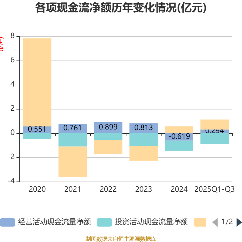 2025年前三季度,公司经营活动现金流净额为2936.59万元,同比增加1.08亿元;筹资活动现金流净额8258.76万元,同比减少5985.36万元;投资活动现金流净额-9251.56万元,上年同期为-4083.89万元。