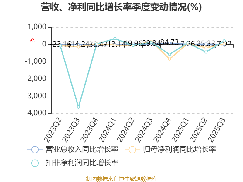 资产重大变化方面,截至2025年三季度末,公司固定资产较上年末减少3.86%,占公司总资产比重下降3.09个百分点;存货较上年末增加18.35%,占公司总资产比重上升1.81个百分点;交易性金融资产合计较上年末增加170%,占公司总资产比重上升1.66个百分点;应收票据及应收账款较上年末减少2.23%,占公司总资产比重下降1.63个百分点。
