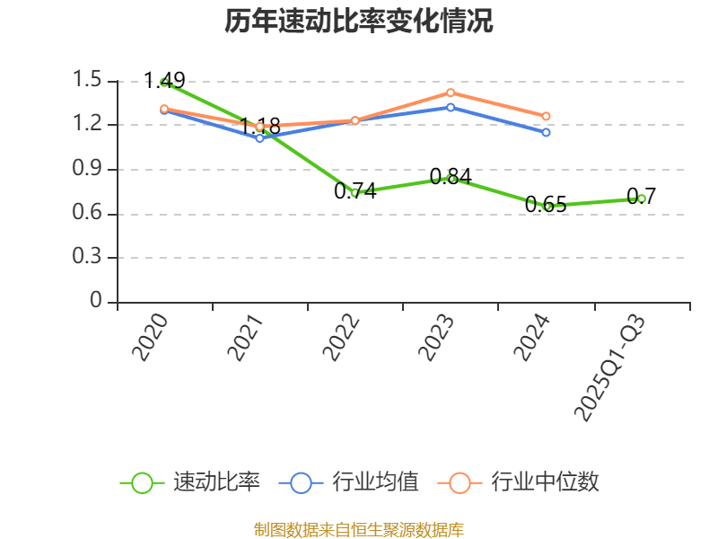 2025年前三季度,公司流动比率为1.11,速动比率为0.7。
